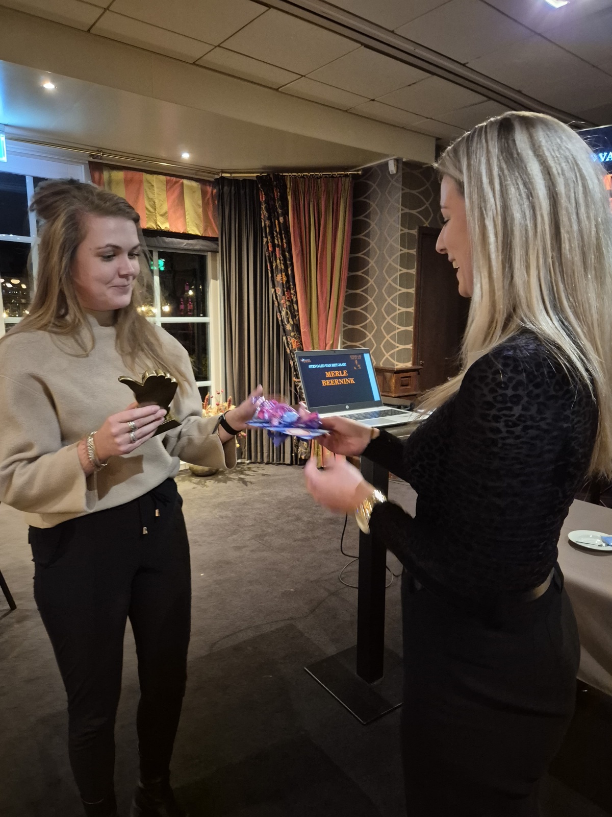Als afsluiting wordt het "Stevo Lid van het Jaar" wereldkundig gemaakt. Dit gebeurt via wat ludieke omschrijvingen, waarbij al snel duidelijk wordt dat het gaat om onze "Koots Beern", oftewel Merle Beernink! Merle, mega bedankt voor alles wat je al jarenlang doet aan vrijwilligerstaken en we hopen dat je nog jaren actief blijft en plezier hebt binnen onze vereniging!