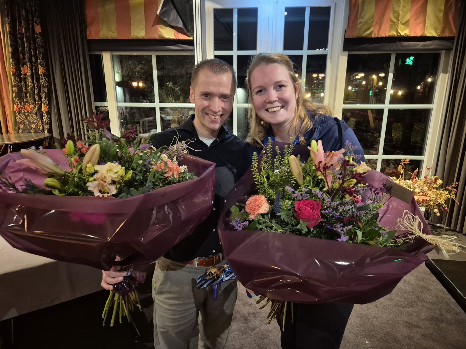 Richting het einde van de vergadering worden de aftredende bestuursleden bedankt voor hun inzet in de afgelopen jaren. Dit zijn Simone Gehring (vanaf 2021) en Rick Wientjes (vanaf 2017). Maar het bestuur is inmiddels weer op volle oorlogssterkte doordat het afgelopen jaar drie nieuwe bestuursleden zijn gestart binnen het bestuur. Dit zijn Tamar Booijink, Tessa Kottink en Marlou van Leijenhorst.